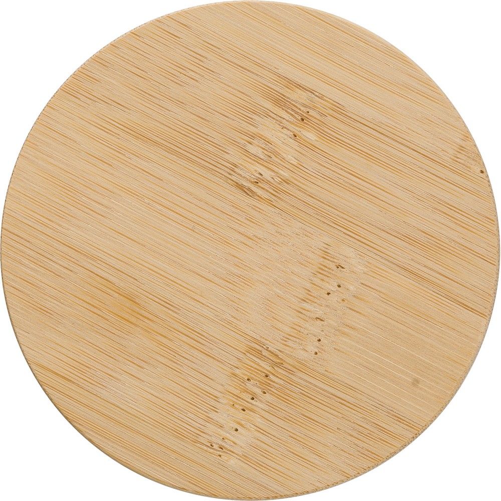 Свічка має скляний свічник з бамбуковою кришкою, яка щільно закривається.