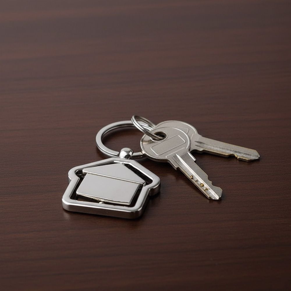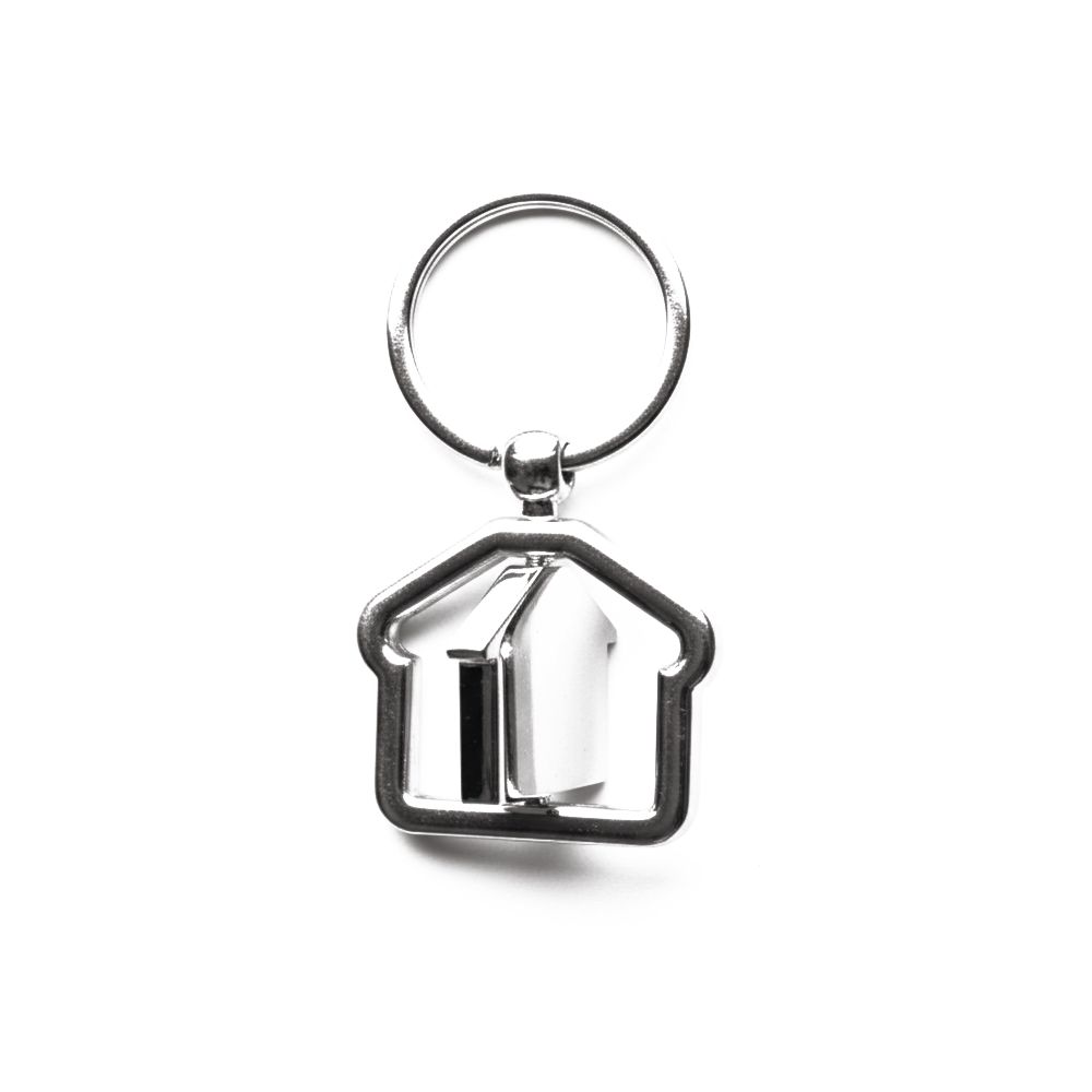Особливістю цієї моделі є внутрішня вставка у формі будиночка, яка обертається, створюючи динамічний та привабливий ефект. Гладка поверхня підходить для брендування. Брелок може стати оригінальним корпоративним сувеніром, подарунком клієнтам і партнерам або ефективним рекламним носієм на виставках і промо-заходах.