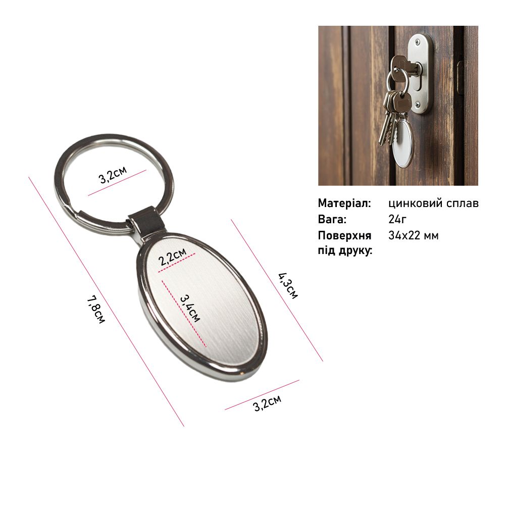 Овальна форма з алюмінієвою вставкою створює рівну поверхню, ідеальну для брендування методом термопереносу. На брелоку можна розмістити корпоративний логотип, рекламний слоган або індивідуальний дизайн. Це робить його практичним аксесуаром і водночас ефективним носієм реклами.