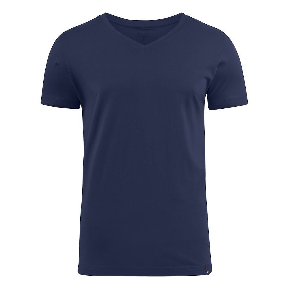 Чоловіча футболка з V-подібним вирізом з гребінної бавовни. Двошарова резінка - комір оберігає від деформації. Обробка ензимами для більшої м'якості.