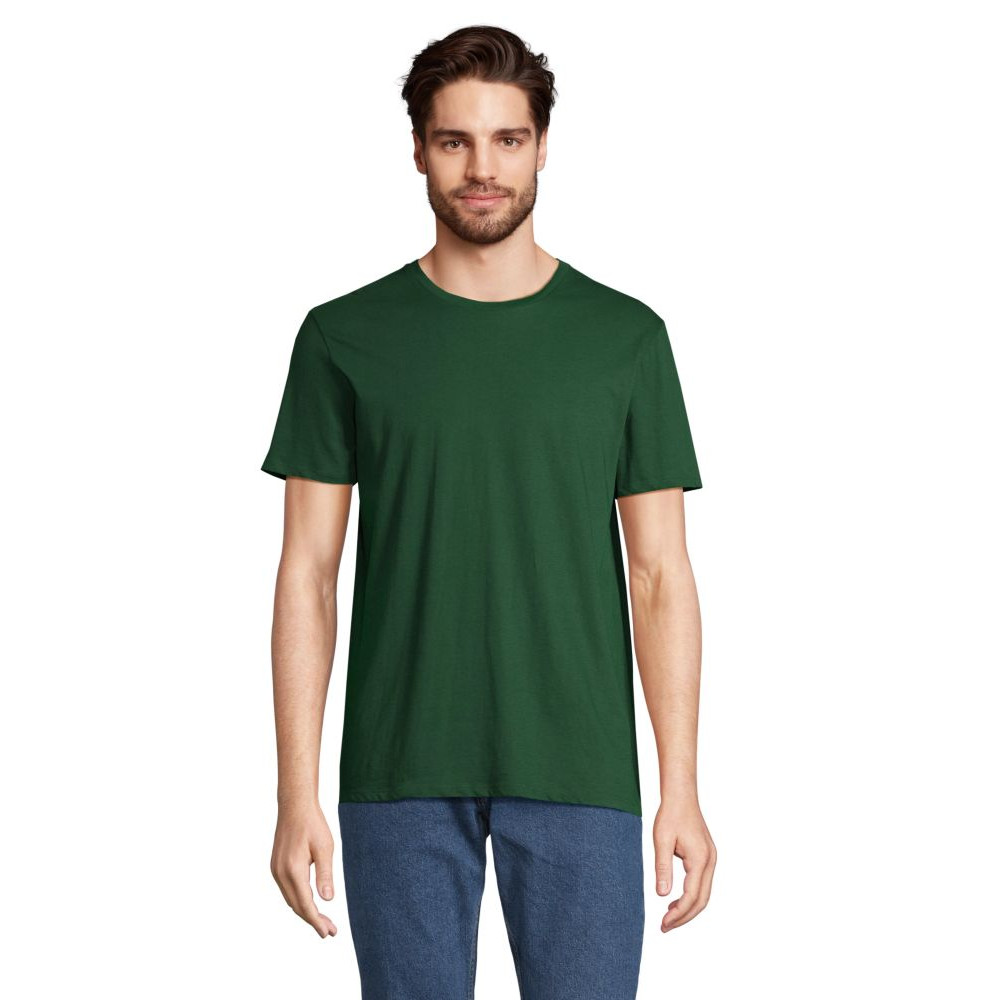 Пошита футболка з тканини зі 100% бавовни, в її складі 50% – перероблена бавовна, 50% – бавовна. Щільність матеріалу – 150 г/м². Деякі варіанти кольорів мають відмінності в складі.