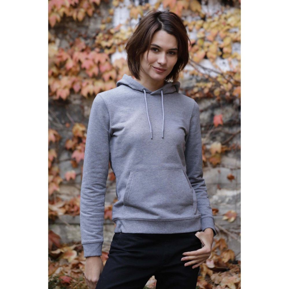 Жіночий худі з капюшоном з футера (french terry) NICHOLAS WOMEN. Карман кенгуру. Капюшон зі стягуючим шнуром. Манжети і низ виробу в резинку 2х2. Нашите півколо з внутрішньої сторони вирізу. Зміцнююча тасьма по внутрішній стороні ворота. Люверси і наконечники в тон виробу.
