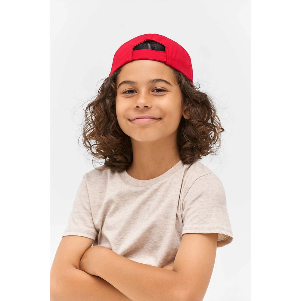 Виготовлена з 100% бавовни (Twill 150) — легкої, дихаючої та зносостійкої тканини, що добре підходить для дитячих аксесуарів. Усередині передбачена вологопоглинаюча тасьма для комфортного носіння. Розмір регулюється за допомогою застібки-липучки на задній частині кепки.