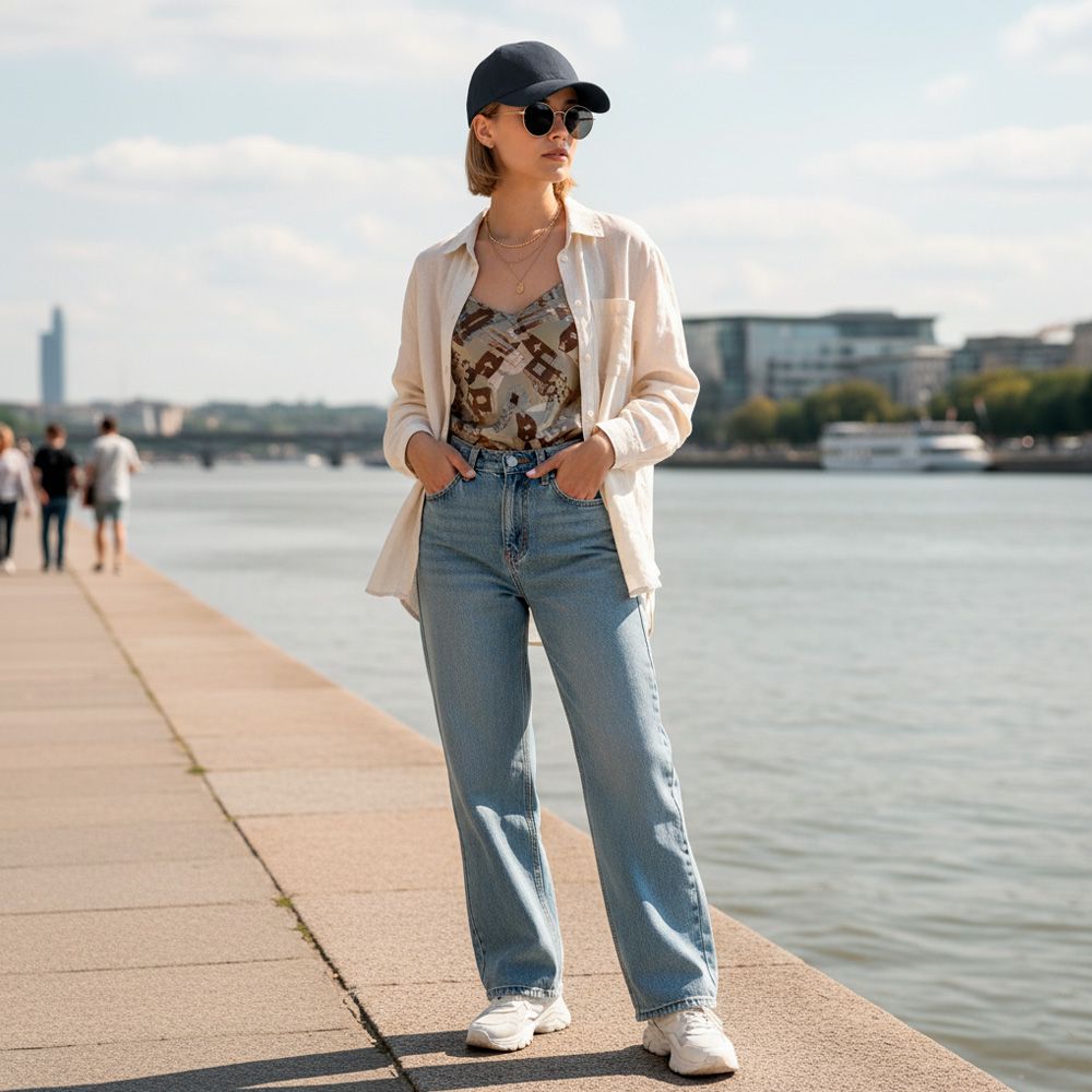 - Вигнутий козирок та вишиті люверси у тон виробу