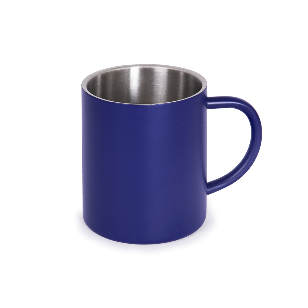 Кружка металева з двома стінками: срібляста - з глянцевим покриттям, кольорові (чорна, синя, олива) - з матовим покриттям. Висота 9,2 см