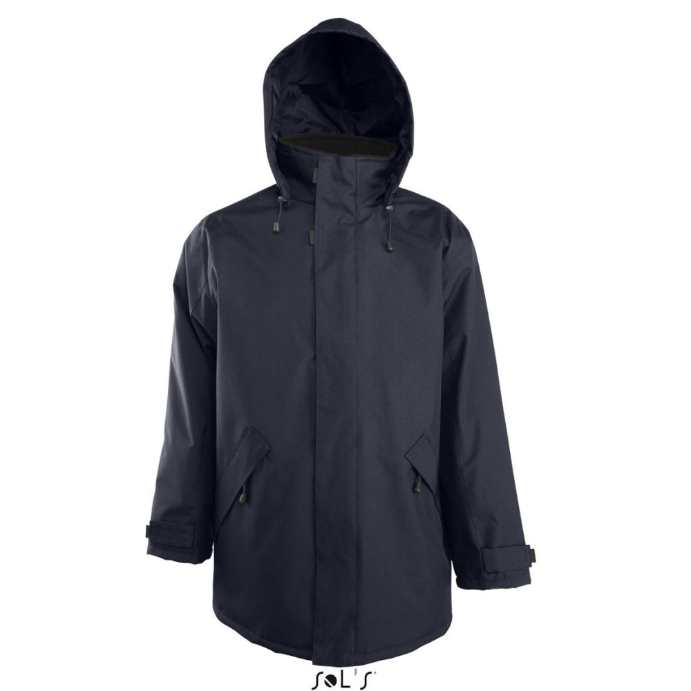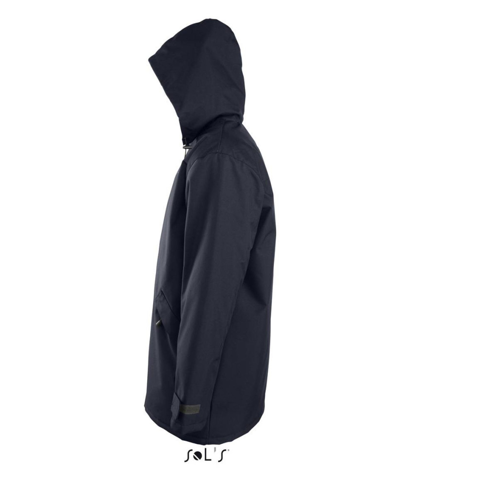 Куртка на стьобаній підкладці SOL'S RIVER. Застібка на планці з блискавкою SBS, на липучках і прихованих кнопках. Манжети з липучками на планках. Капюшон і стягуючий шнурок складаються в комір. 2 внутрішніх і 2 зовнішніх кишені. Оздоблення коміра з чорного мольтона. Матеріал: ОКСФОРД, 100% поліестер; підкладка: стьобаний поліестер.