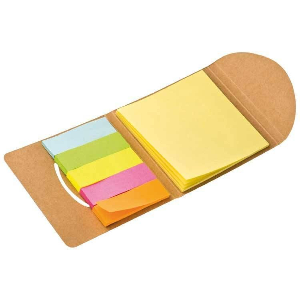 Набір кольорових стікерів в упаковці. Він містить менші стікери у 5 різних кольорах та великий блок жовтих стікерів (по 25 кожного типу). Логотип можна розмістити на упаковці