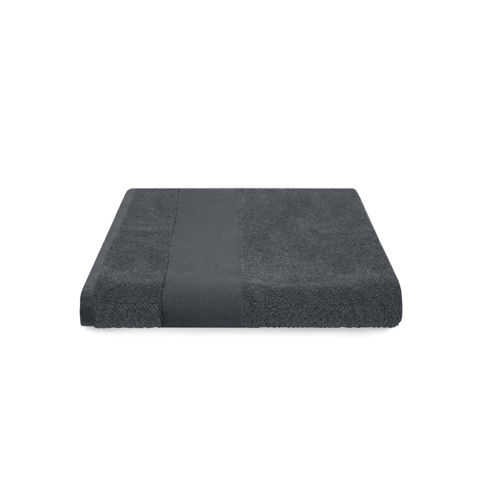 Рушник 100% бавовна, щільність 440 г/м2., розмір 120 x 68 см. Індивідуальна упаковка - поліетиленовий пакет. Подвійна стрічка на загибі, функціональна петля. По одному краю рушника є гладкий бордюр для нанесення логотипу, ширина бордюра 7 см. Рекомендована температура прання 40 градусів