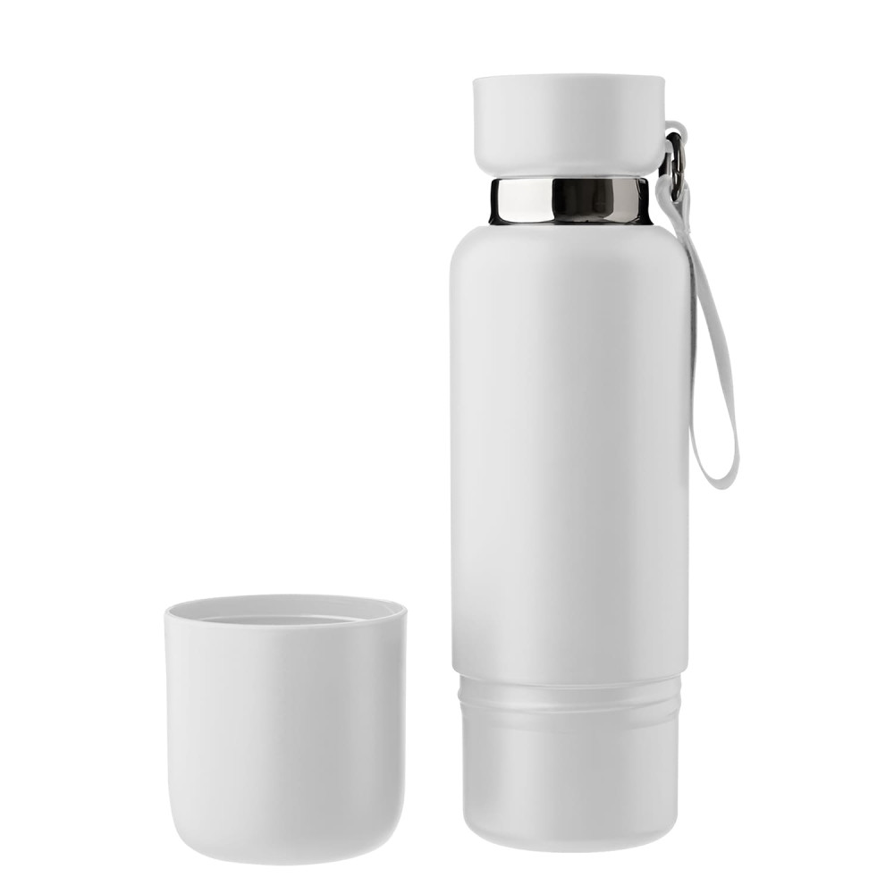 Термопляшка зі з’ємною чашкою, з подвійною стінкою з нержавіючої сталі.