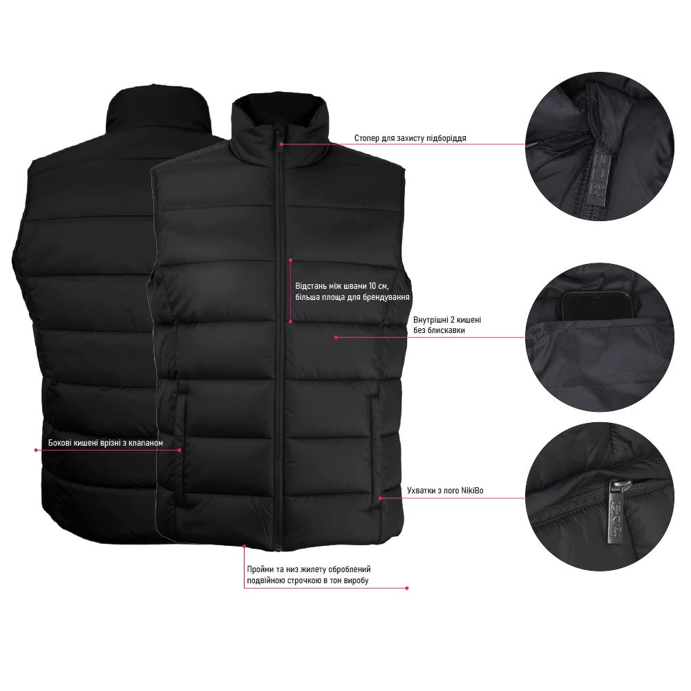 Жилет Nikibo Bask — універсальна модель унісекс, яка поєднує практичність і стиль. Завдяки класичному дизайну та водовідштовхуючому матеріалу жилет ідеально підходить для корпоративного використання та повсякденного носіння. Зручна посадка, продуманий крій і функціональні деталі забезпечують комфорт у будь-яку погоду. Широка площа між швами дозволяє легко наносити брендування.