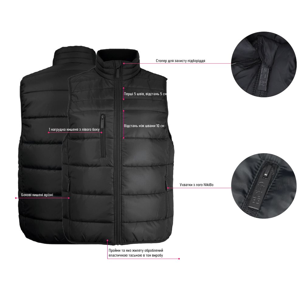 Жилет Nikibo Flow — стильна модель унісекс для корпоративного стилю та щоденного використання. Водовідштовхуючий матеріал і продуманий крій забезпечують комфорт у прохолодну погоду. Завдяки різній відстані між швами жилет виглядає сучасно та зберігає достатню площу для брендування корпоративним логотипом. Практичні кишені й акуратні деталі роблять його зручним для активного використання. Нагрудна кишеня на блискавці має продуману місткість — у ній легко поміститься навіть смартфон формату Pro Max.