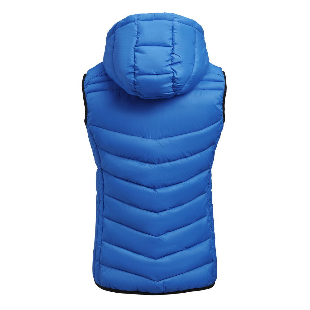 Жилетка Base Women — жіноча модель приталеного крою з відстібним капюшоном. Комбіноване стьобання: горизонтальне спереду та ззаду, вертикальне з боків — підкреслює фігуру й додає акуратності. Капюшон оснащений еластичними шнурками з прорезиненими стоперами для регулювання, а на комірі розташований стопер, який захищає підборіддя. Легкий утеплювач створює комфорт, не обтяжуючи виріб. Бокові кишені на блискавці практичні у повсякденному використанні. Спереду — широке місце для брендування.